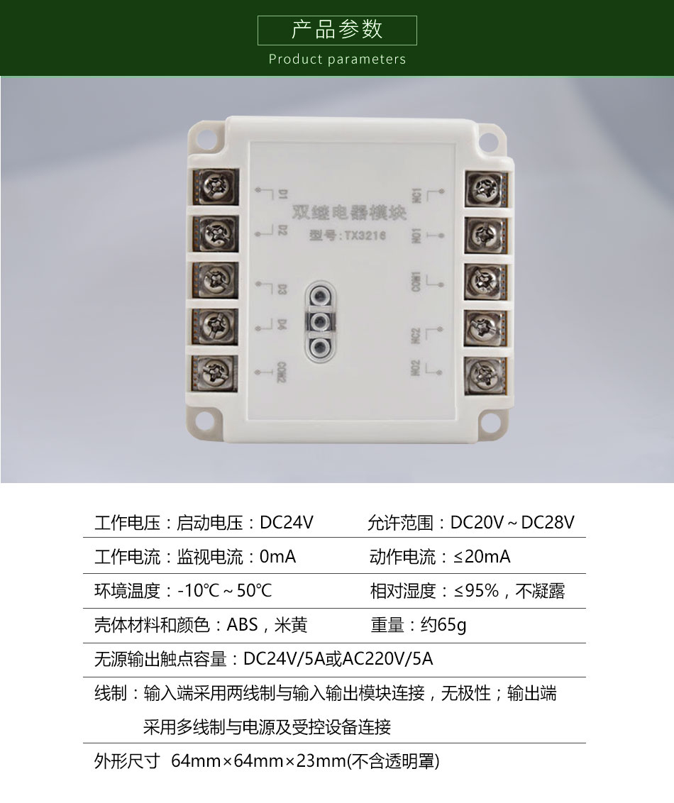 三、TX3216雙繼電器模塊技術參數