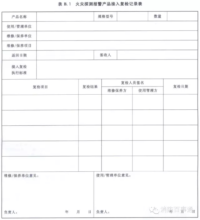 火災探測報警產品接入復檢記錄表的格式見表B.1。