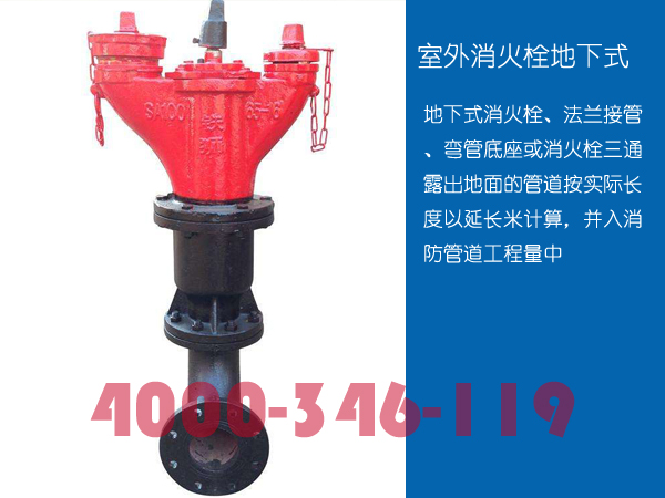 地下式:地下式消火栓、法蘭接管、彎管底座或消火栓三通 露出地面的管道按實(shí)際長度以延長米計(jì)算,并入消防管道工程量中! 管道安裝按設(shè)計(jì)管道中心長度,以“m”為計(jì)量單位,不扣除閥門、管件及各種組件所占長度
